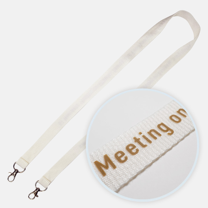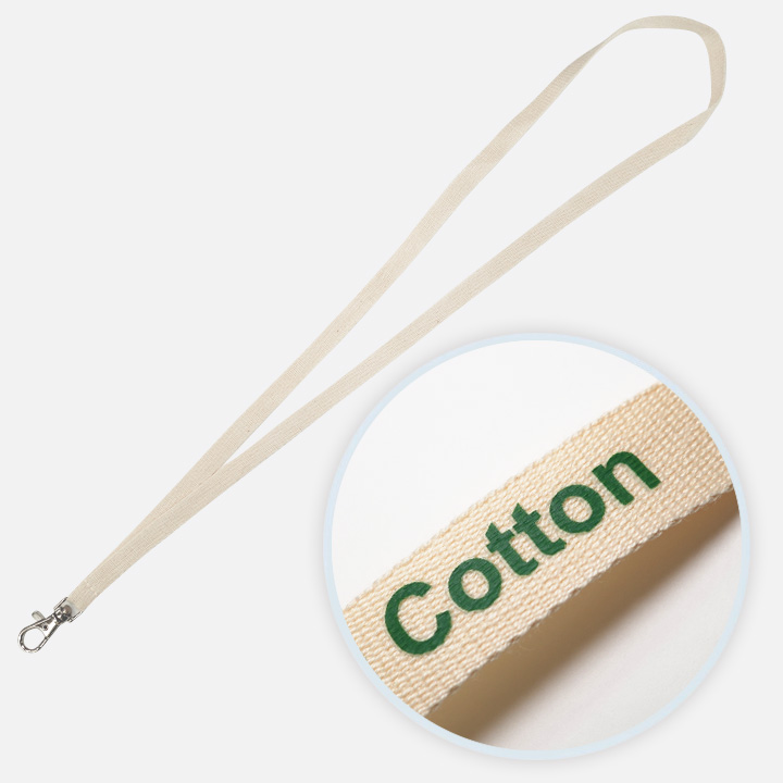 コットンを使用しています。肌触りが優しく、肌にも環境にも優しいネックストラップです。素材証明書の提供も可能です。