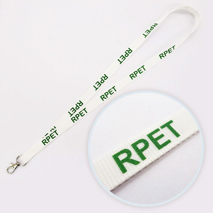 回収されたペットボトルから作られたリサイクルPET素材を使用しています。リサイクル素材のネックストラップで唯一、フルカラー印刷に対応しています。素材証明書の提供も可能です。